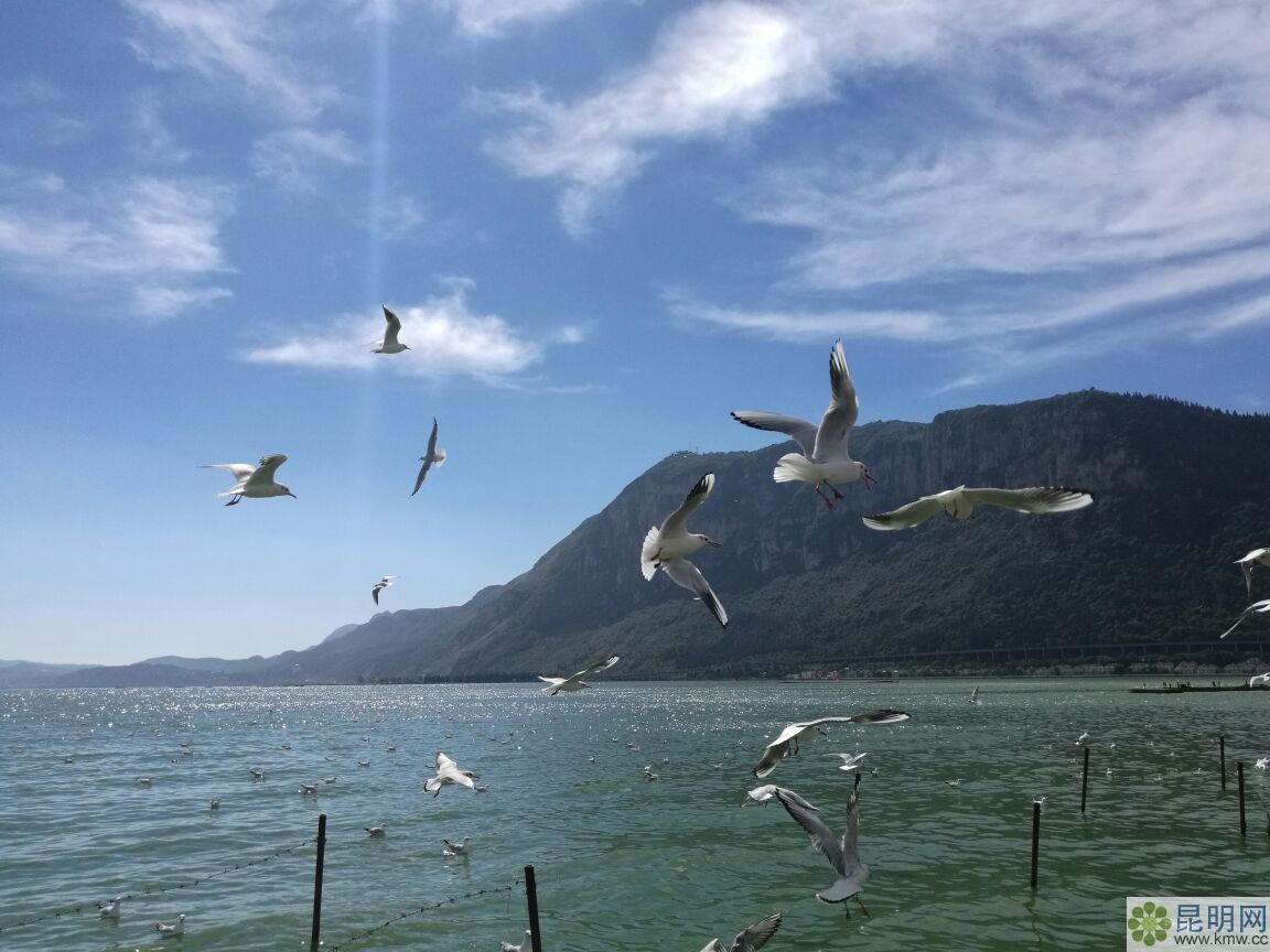 滇池位于西山腳下,距市區(qū)約5公里,北端緊鄰大觀公園,云南民族村與西山公園隔水相望。前些年因不注意保護(hù),水中藍(lán)藻泛濫,導(dǎo)致水質(zhì)急劇惡化。這些年開始大力治理,水質(zhì)明顯好了很多,多年未見的紅嘴鷗也開始出現(xiàn)在湖畔。