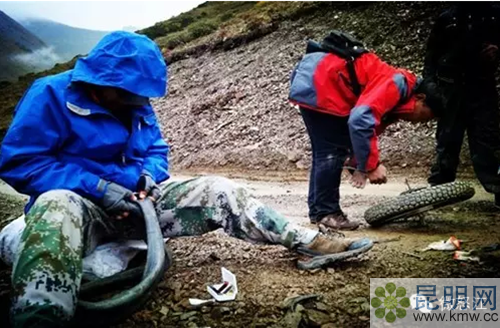 在察隅縣城偷學的補胎手藝,沒想到先用在當地藏民的摩托車上。