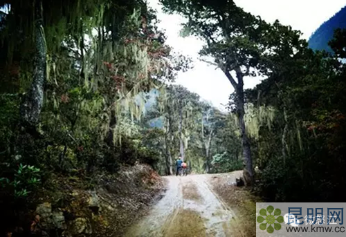 第二天早上離開河水清澈的米奇村,開始推車爬山,很快進入原始森林, 松蘿密布,說明這里空氣質量非常好。