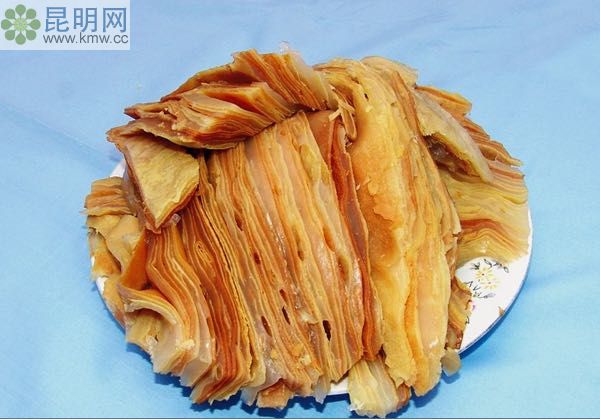 南澗風味食品小吃之一,主料為當地豌豆粉,用傳統工藝經多道工序制成,色澤金黃,厚薄均勻,伴以辣子油、蔥花和蒜等佐料而食,冷熱均可,酸辣爽口,甘香宜人。