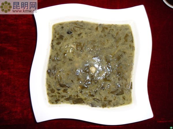 白語(yǔ)稱“得勒姆資”,劍川白族風(fēng)味小吃,是用“蠶豆母豆葉加豆米子”相煮而成。“母子相會(huì)湯“味獨(dú)特,清香可口,鮮嫩可口,還有清涼解毒之效。