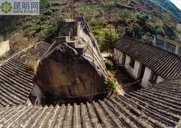 位于匹河福貢民族中學教室院落中,高3米多,寬2米多。1983年山體崩塌,巨石恰好落在院落中間,它象有眼睛一樣,既不傷一個教職工,也不損害房屋,就象人為的置放在那里。如今,這塊飛來石成為各種民間傳說的對象。