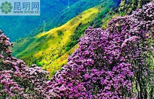 每年的4月至7月是轎子山杜鵑花的盛開期,層層而上的各色杜鵑,此謝彼開,經(jīng)久不敗。滿山的杜鵑樹型各異,花色繁多,置身花海,令人目不暇接,美不勝收。