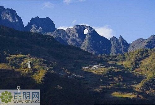交通:從福貢乘車在利沙底下車后,沿高黎貢山一側的小路向上爬,約走一天的路程,可在石月亮下的小村寨住下。第二天一早往峭壁上攀巖,不久即可到達。