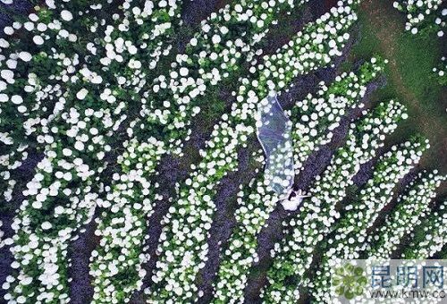 白色的安娜系花球,有一個(gè)變色的過程,最初它們會泛著淡淡的綠色那時(shí)的景色雖壯觀卻難以往“浪漫”一詞上沾邊。漸漸地,它們褪去綠色變成全身潔白的花團(tuán),好似毛毛蟲破繭成蝶一樣,它們化身成了白白軟軟的花中精靈,看上去就異常可愛。