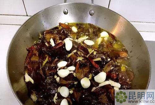 牛肝菌的做法最簡單的就是炒,炒牛肝菌的要義,就是一定要加豬油加蒜再用大火炒。除了爆炒,牛肝菌用辣椒油爆炒以后,做成菌子醬下拌面條吃也是一絕,菌子柔軟又清脆的神奇質感包裹著被作料浸染過的面條,富有層次感的口感簡直讓人欲罷不能。