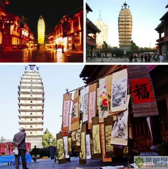 東寺塔今在書林街,云南人民出版社旁。其開關與大理三塔中的主塔相似。比西寺塔略高。兩塔一西一東,遙遙相對,在現代化建筑的襯托下更顯得古樸蒼勁。兩塔距今已有1100多年的歷史。