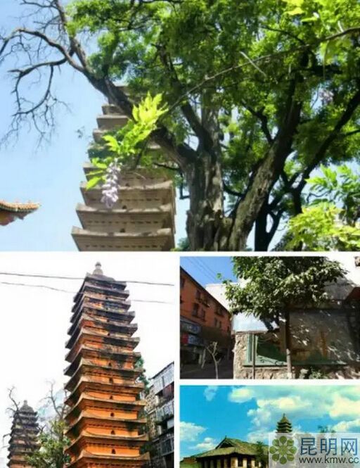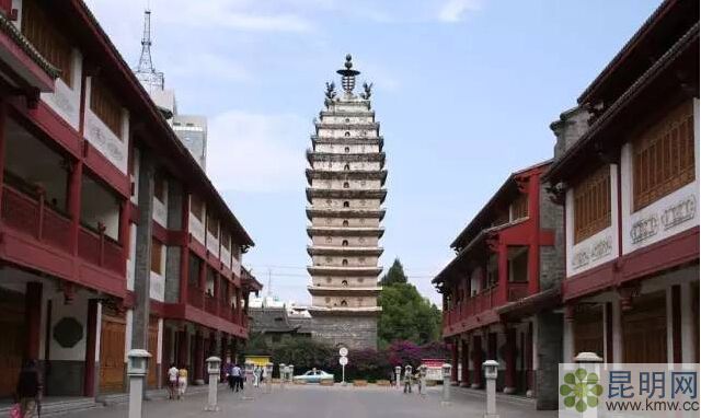 “城南雙塔高嵯峨,城北千山如涌波。”這是明初史謹描寫昆明景色的兩句詩。這“城高雙塔”,即指昆明的東寺塔和西寺塔。西寺塔今在東寺街南段西側的部隊營房中,塔旁原有慧光寺,俗稱西寺,早毀。