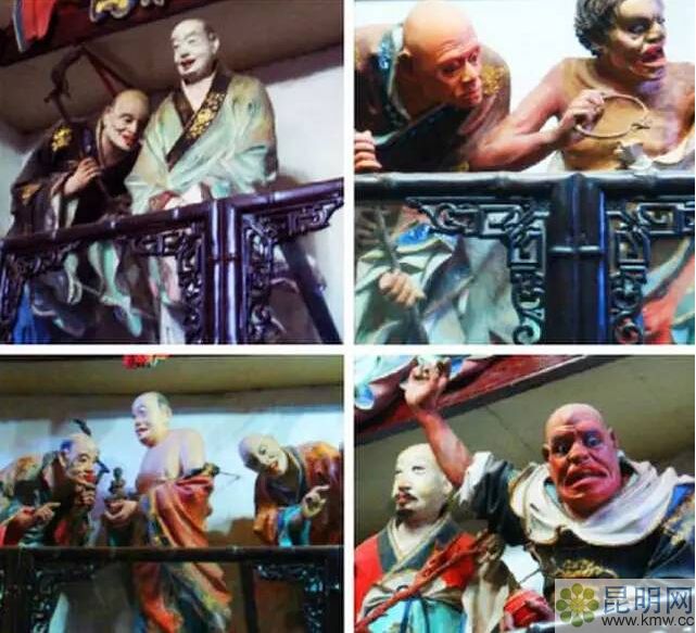 應該說,筇竹寺最具魅力的,當數由清代四川民間泥塑大師黎廣修師徒5人歷經7年塑起的500羅漢。這些羅漢被塑造的生動樸實,神情各異,令人拍案叫絕。這一組羅漢塑像被稱為“東方雕塑藝術寶庫中的一顆明珠”。
